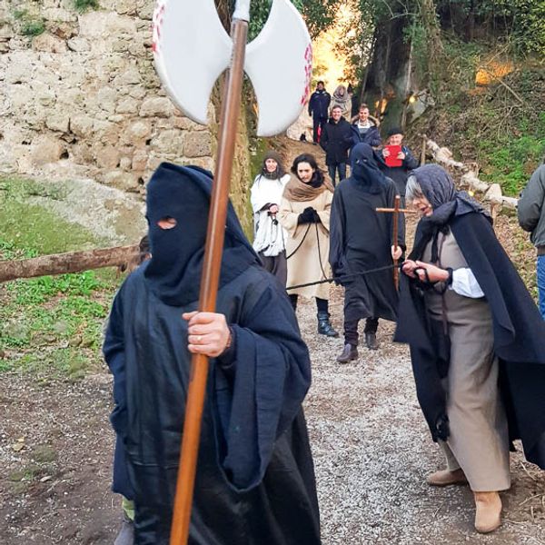 Nella splendida cornice delle rovine del vecchio Canale Monterano, in provincia di Roma, a pochi passi dal lago di Bracciano, uno spettacolare e suggestivo presepe vivente, diverso dal solito, in quanto ambientato in epoca medievale e non romana.