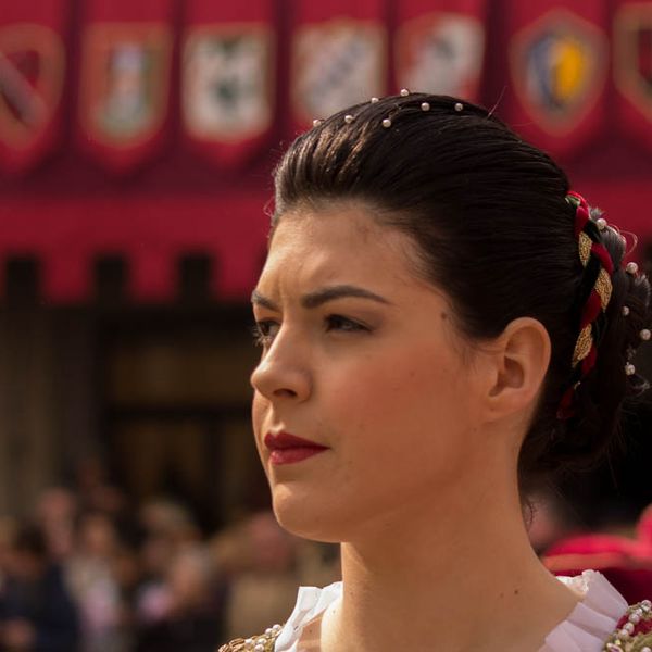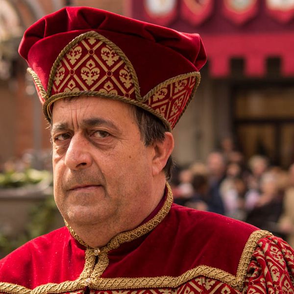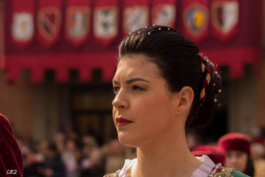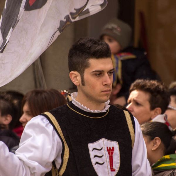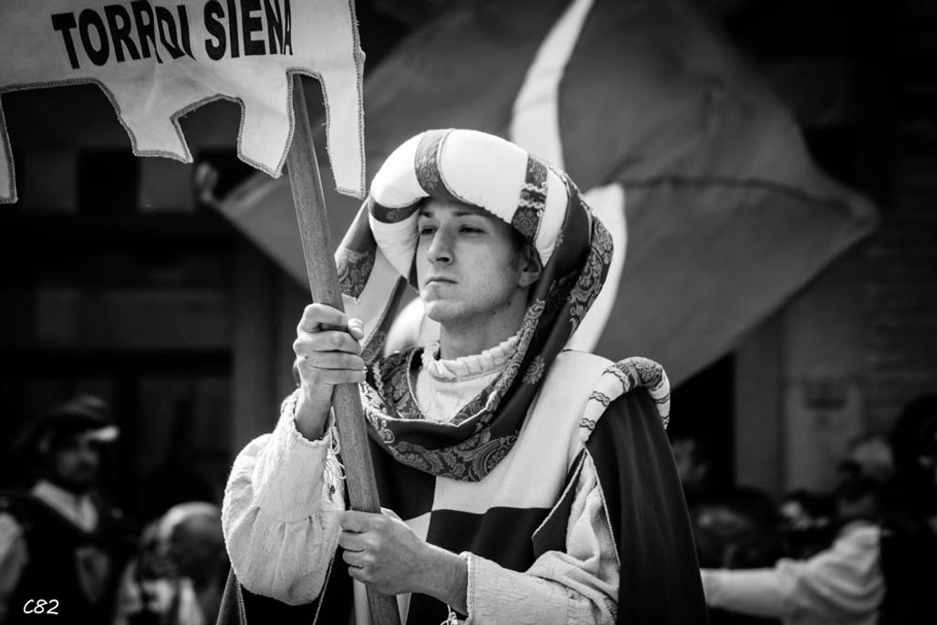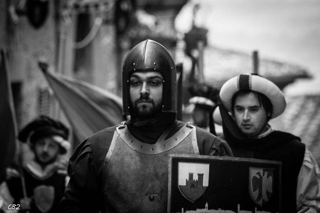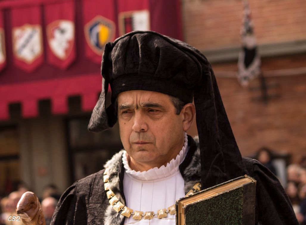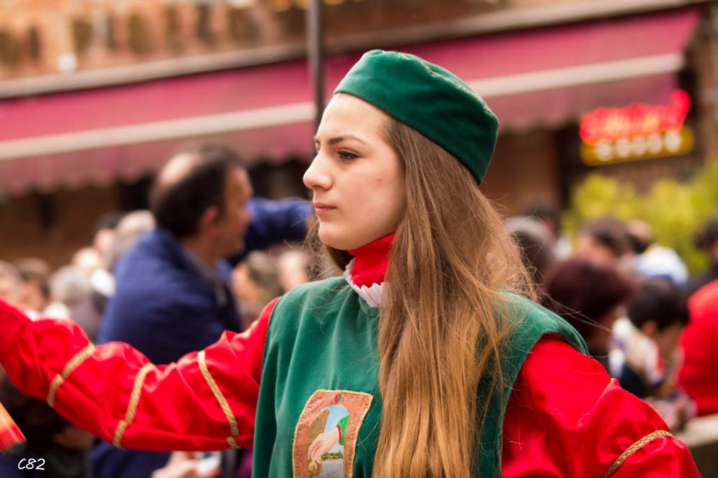 Durante i festeggiamenti del palio dei somari 2015, l'ingresso in piazza delle contrade ed il numero di gruppo degli sbandieratori e dei tamburini delle otto contrade di Torrita di Siena.